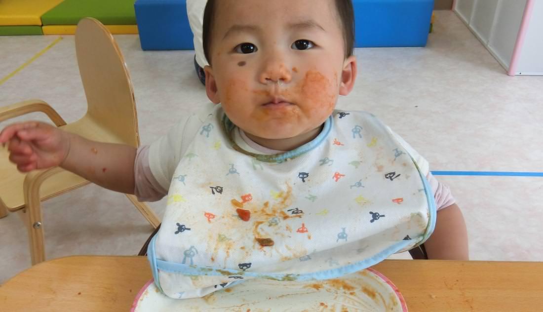 ご飯は一人でたべるより、みんなで食べると何倍もおいしいです。園ではこうした時間も大切にしています。